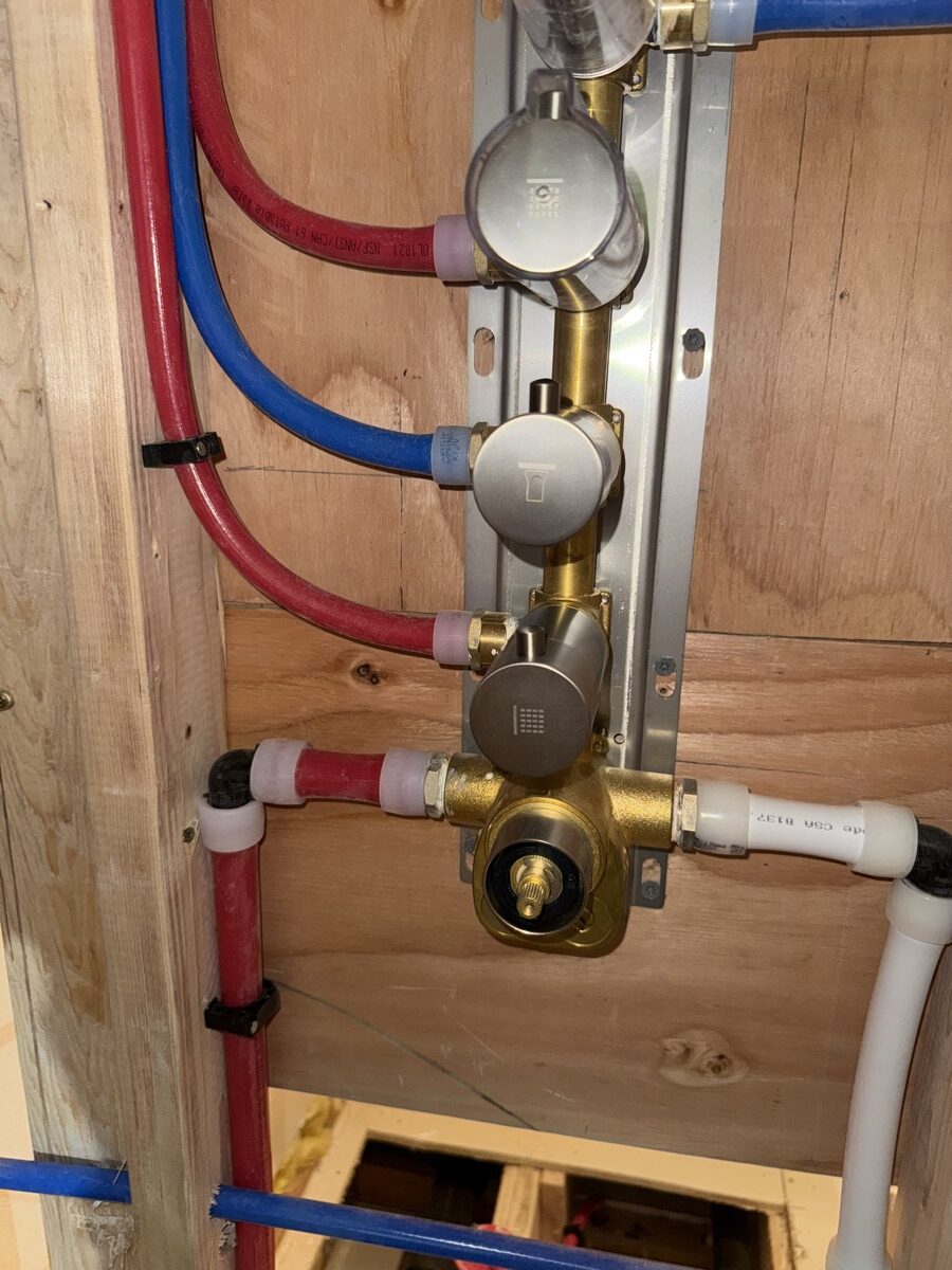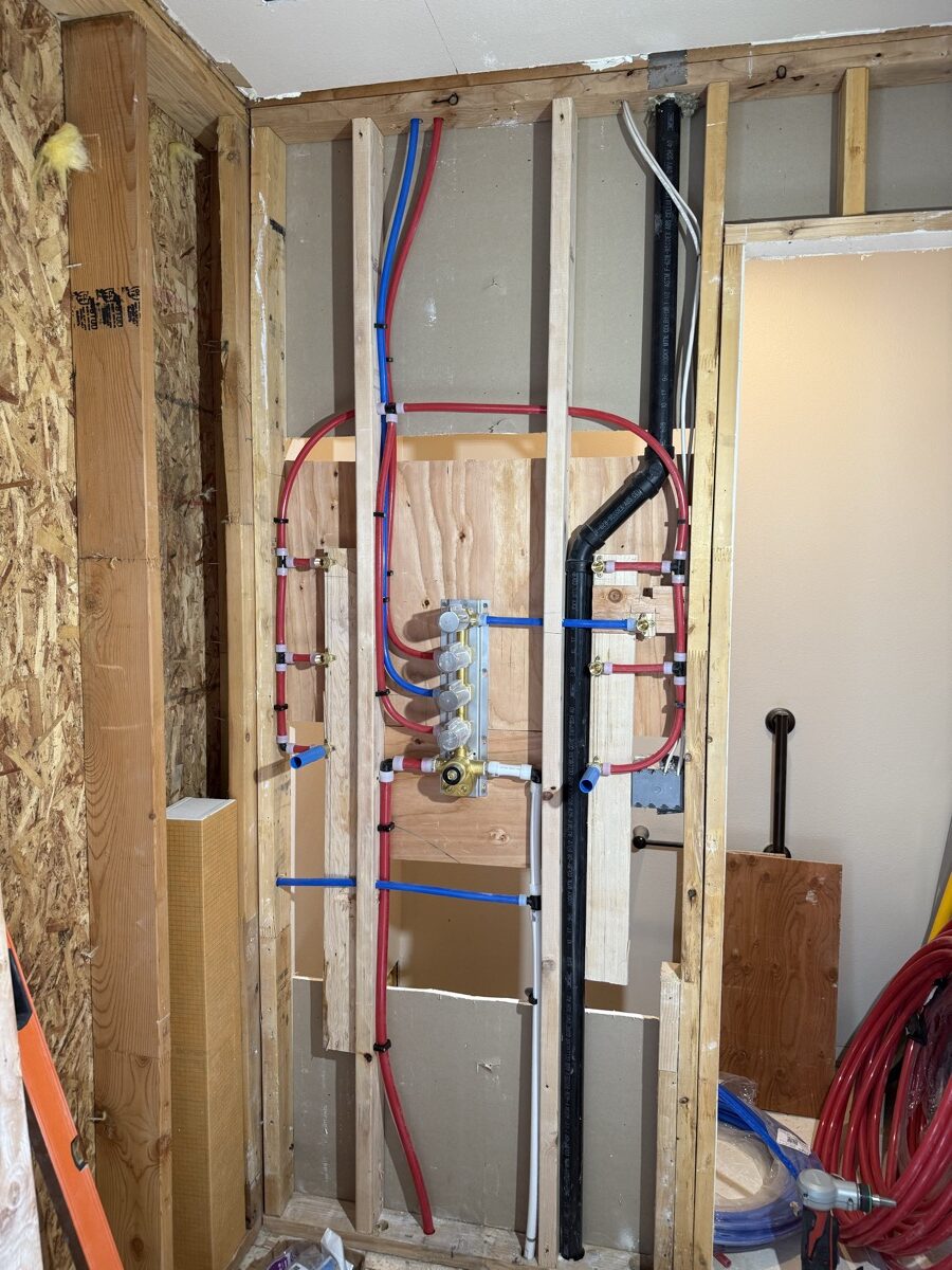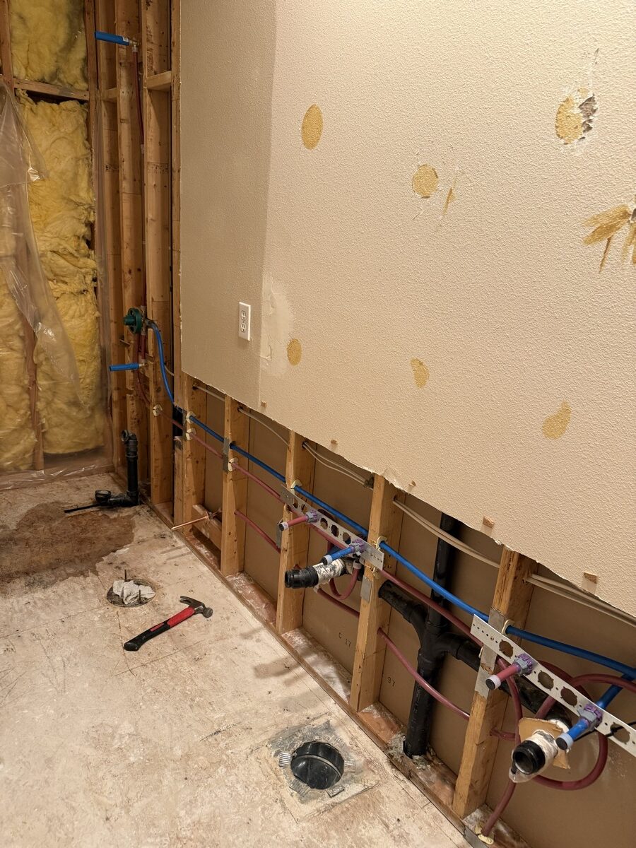 The work under the tile and paint. Careful framing, clean rough-in plumbing and code-correct penetrations are what make a finished room last.